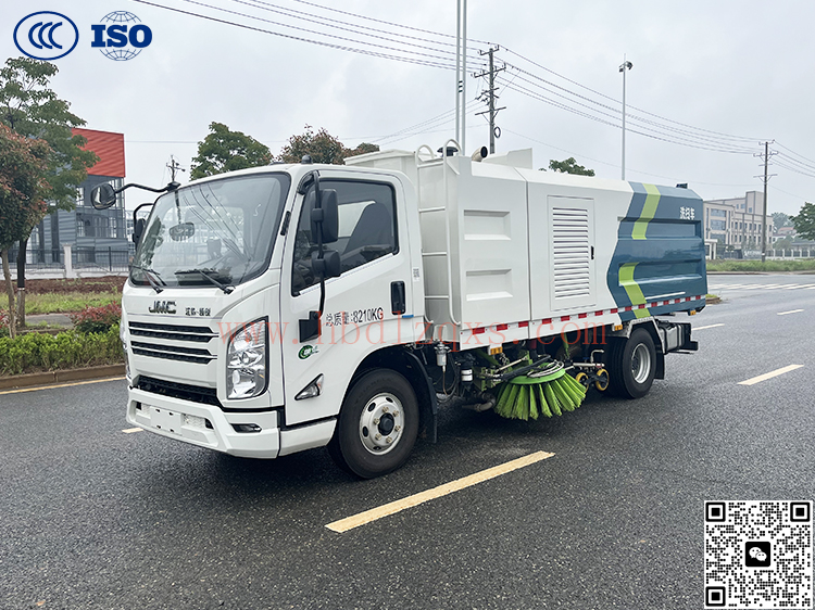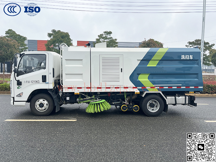 江铃凯越8吨高效真空洗扫车是我公司自行设计开发、具有自主知识产权、国际领先技术水平的新一代路面、路缘清洗、清扫及喷雾降尘的专用设备。该款洗扫车结合了扫路车及高压清洗车的功能特点,并解决了吸尘车在城市路道上无法清洗路缘的短板,在作业时利用扫刷将地面垃圾扫向车内侧,路面上的顽固附着物由高压喷水杆喷出的水流冲起,再由吸盘吸入垃圾箱贮存。具有绿色环保、功能齐全、设计合理、能耗低、清洗范围大、使用寿命长等特点。