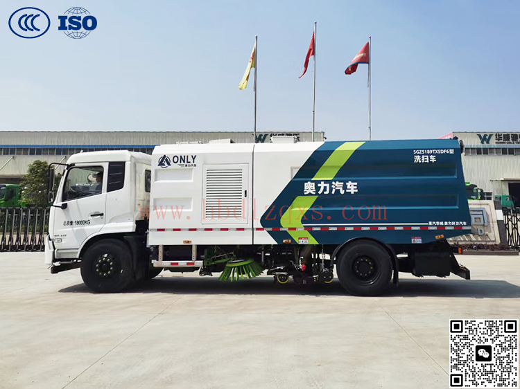 东风天锦18吨高效真空洗扫车是我公司自行设计开发、具有自主知识产权、国际领先技术水平的新一代路面、路缘清洗、清扫及喷雾降尘的专用设备。该款洗扫车结合了扫路车及高压清洗车的功能特点,并解决了吸尘车在城市路道上无法清洗路缘的短板,在作业时利用扫刷将地面垃圾扫向车内侧,路面上的顽固附着物由高压喷水杆喷出的水流冲起,再由吸盘吸入垃圾箱贮存。具有绿色环保、功能齐全、设计合理、能耗低、清洗范围大、使用寿命长等特点。