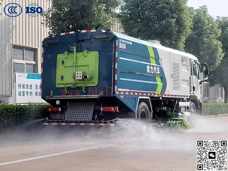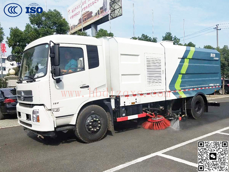 高效洗扫车利用高压水流及倾斜扫刷将垃圾扫至吸盘前面,在风机产生的负压作业下,风流在闭合的回路中将垃圾吸入垃圾箱中贮存,整个作业过程均是物理原理,不会产生化学废料或垃圾外泄对环境的二次污染,同时,后喷雾的降尘有效的降低了空气中粉尘浓度, 解决粉尘污染问题。洗扫洁净度高,该车型齐全的功能解决不同路面环境的作业,一次作业洗扫效率达96%以上,定点冲洗功能、洗扫功能、路沿清洗功能、后喷雾功能、低压冲洗功能以及采用的中置吸盘+左右侧喷杆清洗方式,可对路面、沟缝、弯道处、路沿上等处的灰尘、垃圾均能处理干净,确保环境干净、整洁。