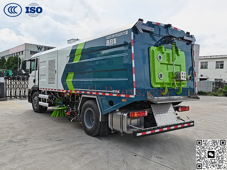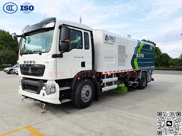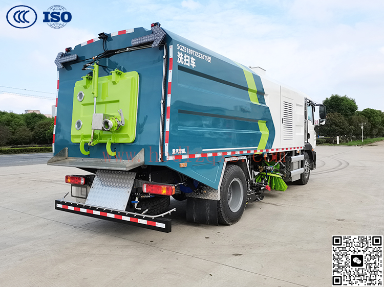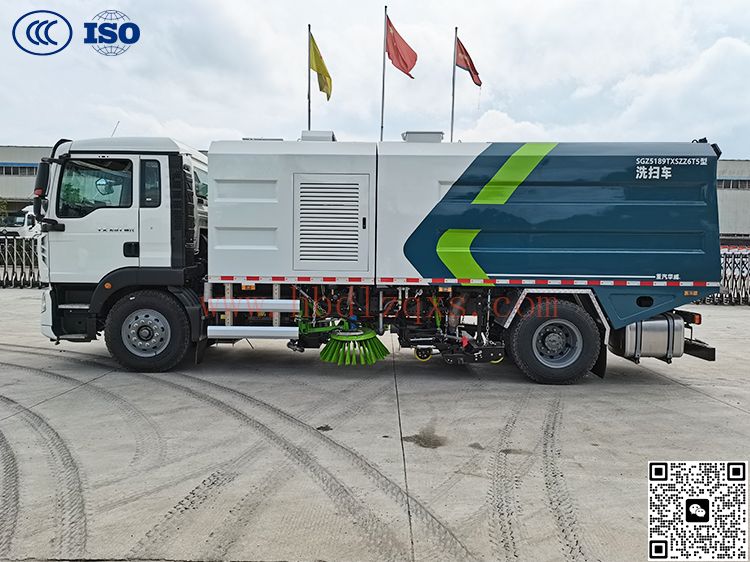 重汽豪沃18吨高效真空洗扫车是我公司自行设计开发,具有自主知识产权,国际领先技术水平的新一代路面、路缘清洗、清扫及喷雾降尘的专用设备。该款洗扫车结合了扫路车及高压清洗车的功能特点,并解决了吸尘车在城市路道上无法清洗路缘的短板,在作业时利用扫刷将地面垃圾扫向车内侧,路面上的顽固附着物由高压喷水杆喷出的水流冲起,再由吸盘吸入垃圾箱贮存。具有绿色环保、功能齐全、设计合理、能耗低、清洗范围大、使用寿命长等特点。