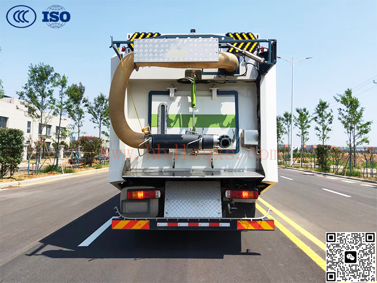 5、组合式吸嘴 中置创新设计的流体仿真高效组合式吸嘴,其除主吸嘴外,在主吸嘴左右两 侧各有一组副边吸嘴,可紧贴路沿,其可同时满足传统洗扫车高压直喷清洗作业 和高压旋转射流深度污染清除作业需求,其主吸嘴吸污宽度达2270mm,副吸嘴吸 污宽度达550mm,在主副吸同时工作时其最大吸污宽度可达3370mm。其主吸嘴污 水回收率达到98.9%以上,其副边吸嘴污水回收率达到95%以上,提高了工作效 率和作业清洁度。