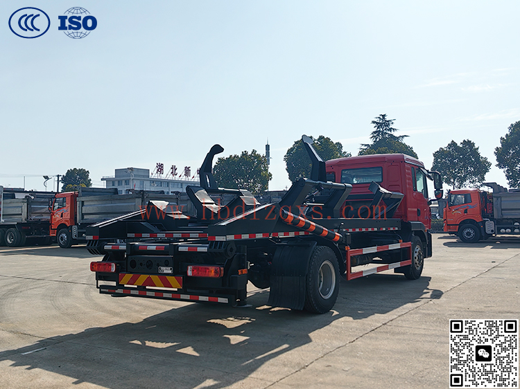 油田背罐车主要用于油田工地下灰罐的转运运输,其运输原理主要通过翻转机构翻转与筒仓靠近后,通过提升机构提升筒仓,再通过翻转机构平放至车上运输,操作简单,带无线遥控操作,方便快捷,省时省力,安全可靠,是目前油田工地运输筒仓的主要车型